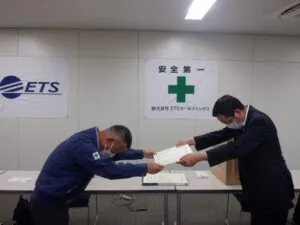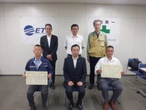 「四日市火力線一部増強工事」にて当社社員が安全を徹底し無事故・無災害で完工したことに対しての表彰状が授与されました。