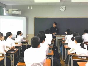 2023年7月8日に弊社代表取締役社長の加藤慎章が大田区立大森第七中学校の生徒に向け、