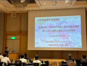 当日は、岩手県内の工業高校や専門高校校長及び企業経営者約80名参加の中、伝統を守りつつも革新を追求する現代社会に適応した弊社の人材育成の取り組みについて講演いたしました。