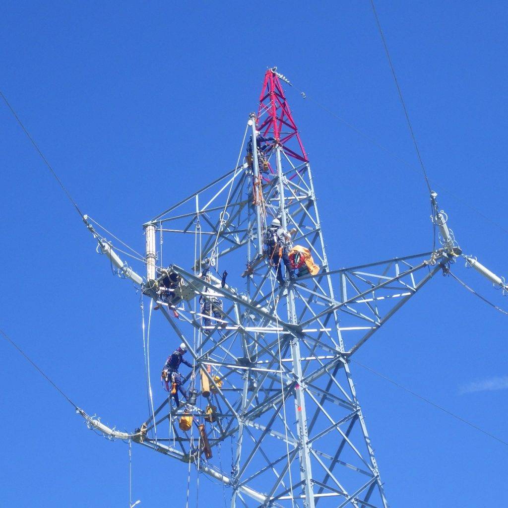 送電線の新設工事、張り替え工事、保守点検などを行う部署です。